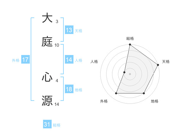 大庭 心源さんの総格は31画の5点!