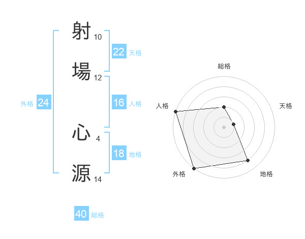 射場 心源さんの総格は40画の2点!