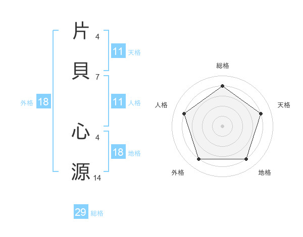 片貝 心源さんの総格は29画の4点!
