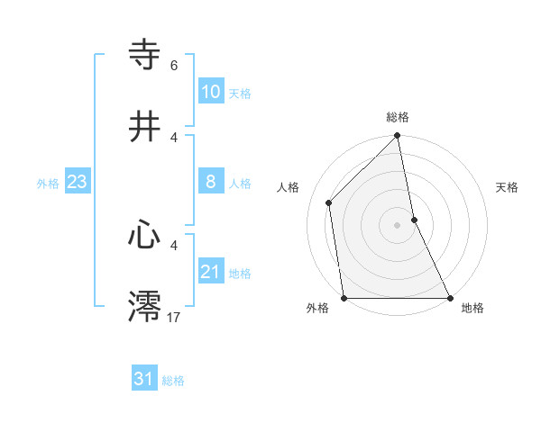 寺井 心澪さんを姓名の画数から五運を鑑定