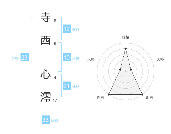 寺西 心澪さんを姓名の画数から五運を鑑定