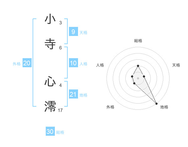 小寺 心澪さんの総格は30画の2点!
