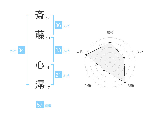斎藤 心澪さんの総格は57画の4点