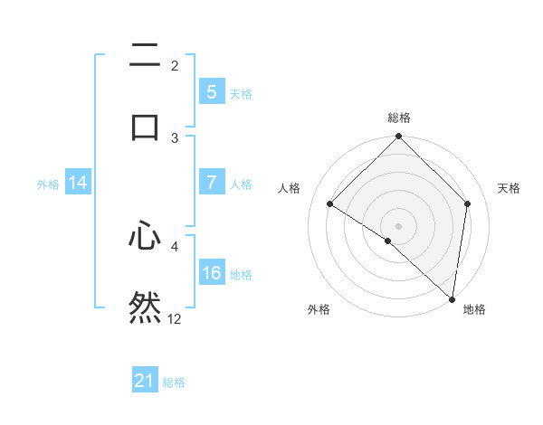 二口 心然さんの総格は21画の5点!