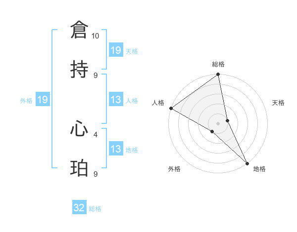 倉持 心珀さんを姓名の画数から五運を鑑定