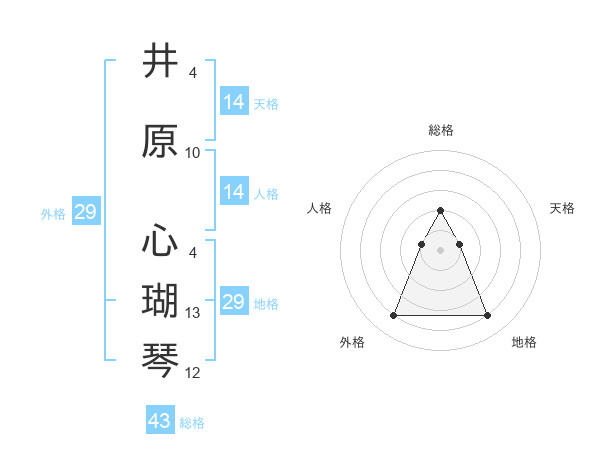 井原 心瑚琴さんを姓名の画数から五運を鑑定