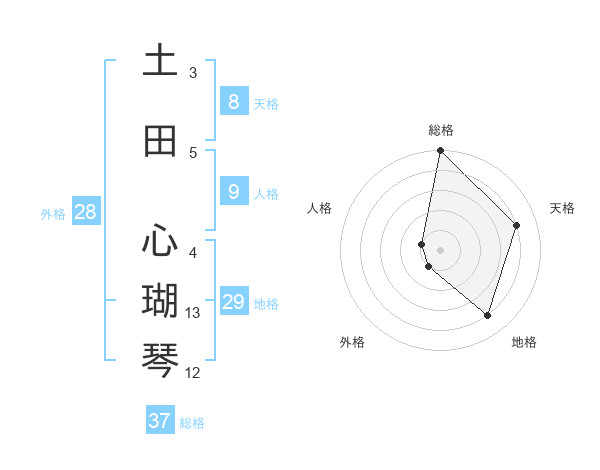 土田 心瑚琴さんを姓名の画数から五運を鑑定