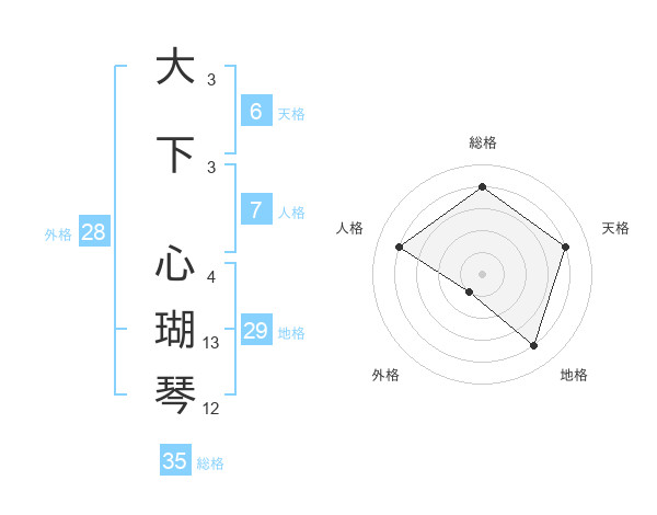 大下 心瑚琴さんの総格は35画の4点