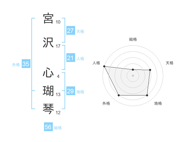 宮沢 心瑚琴さんを姓名の画数から五運を鑑定