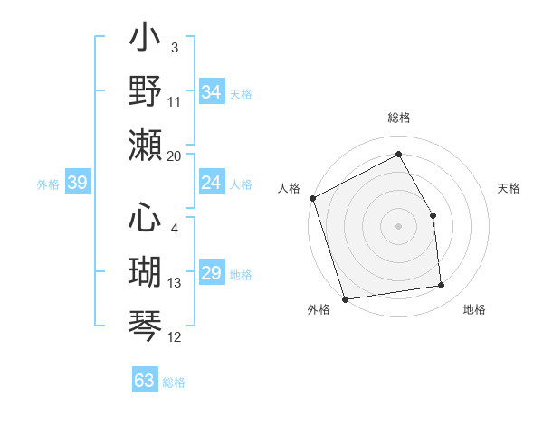 小野瀬 心瑚琴さんを姓名の画数から五運を鑑定
