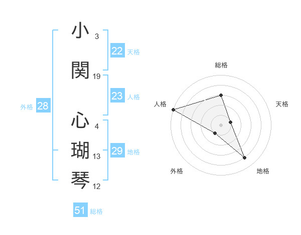 小関 心瑚琴さんを姓名の画数から五運を鑑定