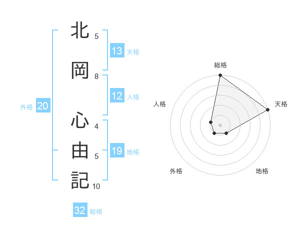 北岡 心由記さんの天格は13画の5点!