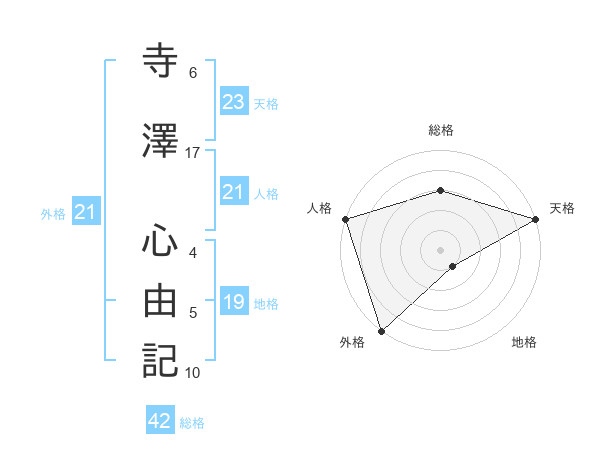 寺澤 心由記さんを姓名の画数から五運を鑑定