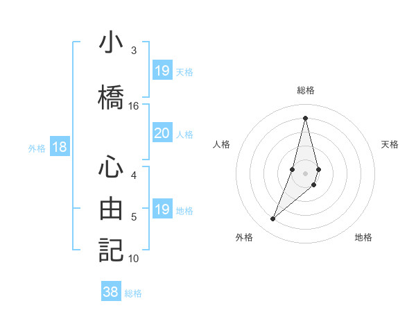 小橋 心由記さんの総格は38画の4点!