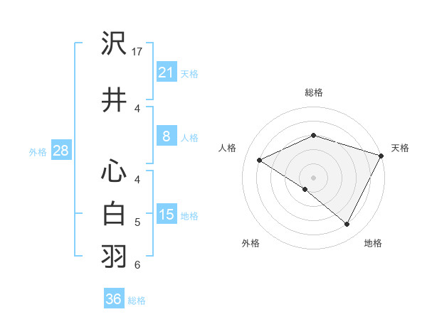沢井 心白羽さんの天格は21画の5点!