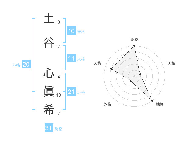 土谷 心眞希さんを姓名の画数から五運を鑑定
