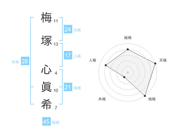 梅塚 心眞希さんを姓名の画数から五運を鑑定