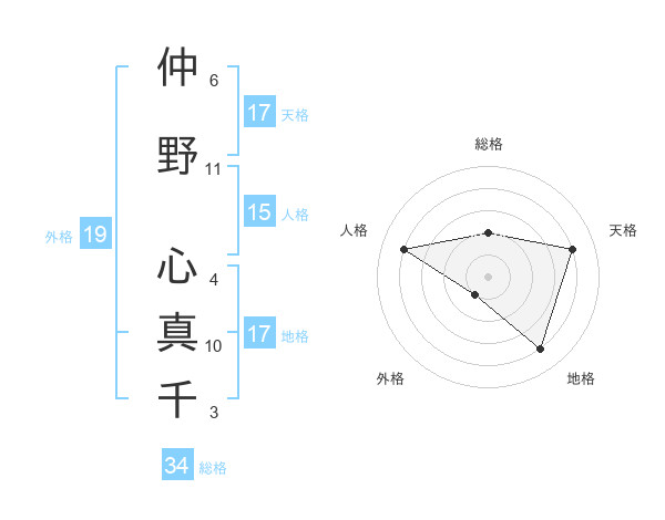 仲野 心真千さんを姓名の画数から五運を鑑定