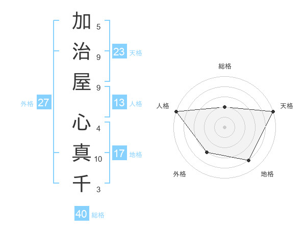 加治屋 心真千さんを姓名の画数から五運を鑑定
