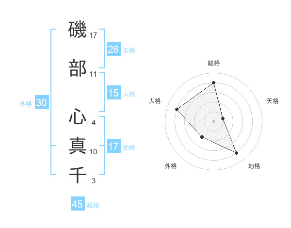 磯部 心真千さんを姓名の画数から五運を鑑定