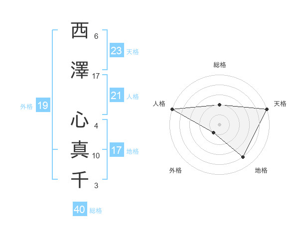 西澤 心真千さんを姓名の画数から五運を鑑定