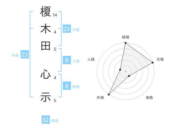 榎木田 心示さんの総格は32画の5点!