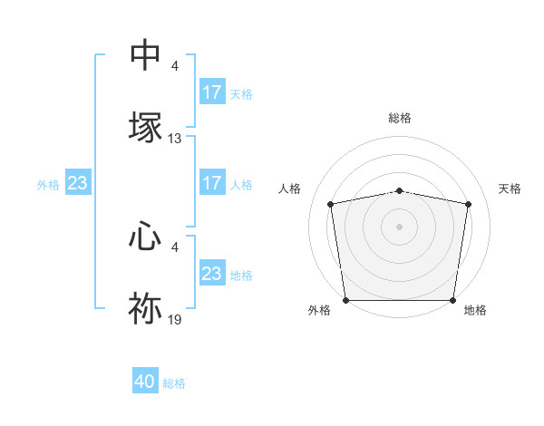 中塚 心祢さんの天格は17画の4点!