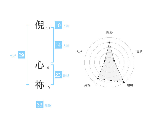 倪 心祢さんの総格は33画の4点!