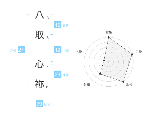 八取 心祢さんの総格は39画の5点!