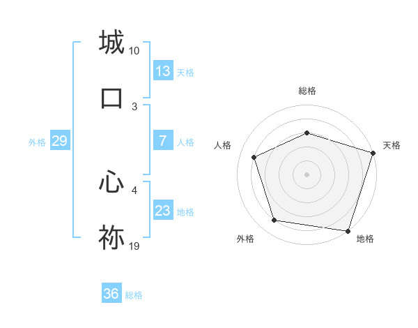 城口 心祢さんの天格は13画の5点!