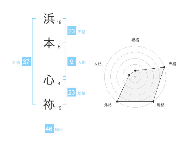 浜本 心祢さんを姓名の画数から五運を鑑定