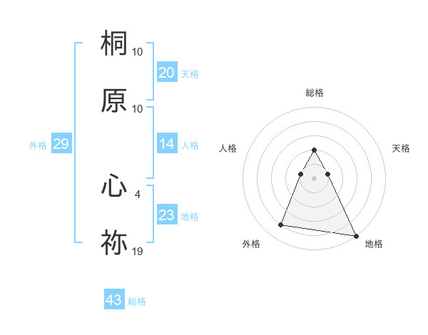 桐原 心祢さんを姓名の画数から五運を鑑定