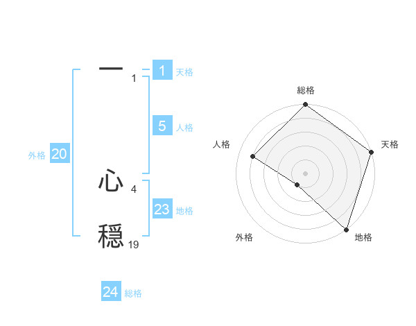 一 心穏さんの地格は23画の5点!