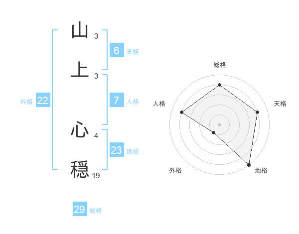山上 心穏さんの地格は23画の5点!