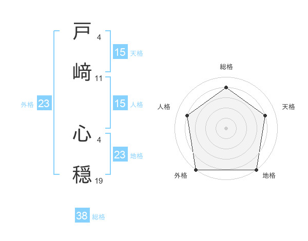 戸﨑 心穏さんを姓名の画数から五運を鑑定