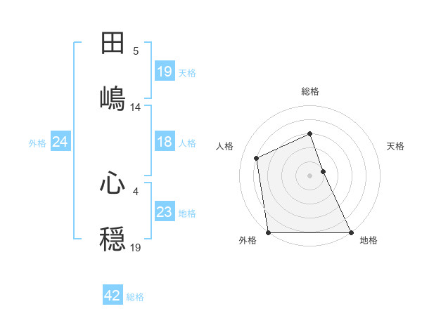 田嶋 心穏さんを姓名の画数から五運を鑑定