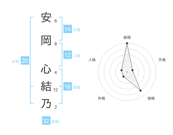 安岡 心結乃さんの総格は32画の5点!