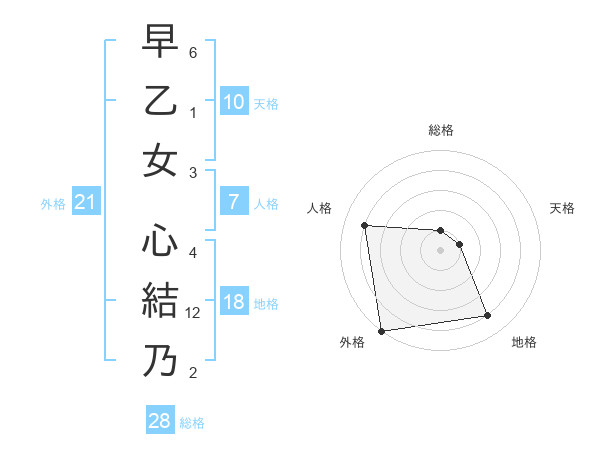 早乙女 心結乃さんを姓名の画数から五運を鑑定
