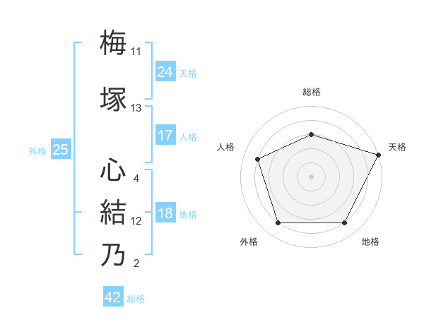 梅塚 心結乃さんを姓名の画数から五運を鑑定