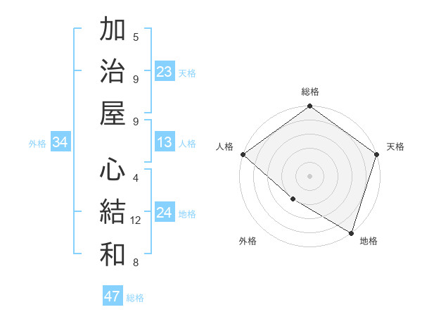 加治屋 心結和さんを姓名の画数から五運を鑑定