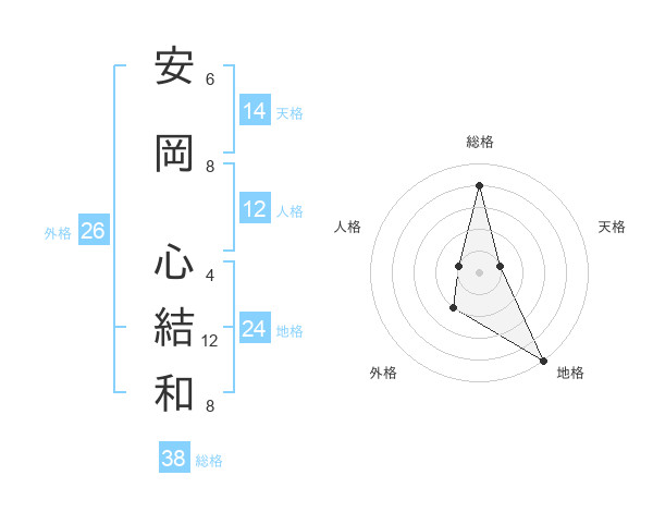 安岡 心結和さんを姓名の画数から五運を鑑定