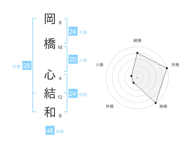 岡橋 心結和さんの総格は48画の4点!