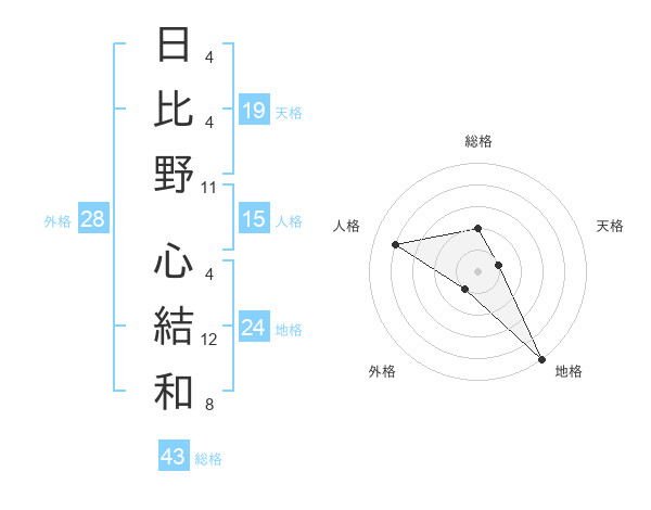 日比野 心結和さんの地格は24画の5点!