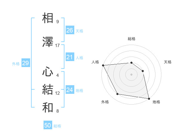 相澤 心結和さんを姓名の画数から五運を鑑定