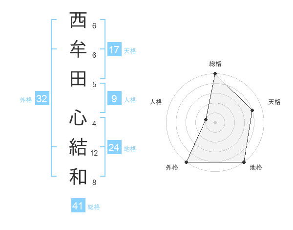 西牟田 心結和さんを姓名の画数から五運を鑑定