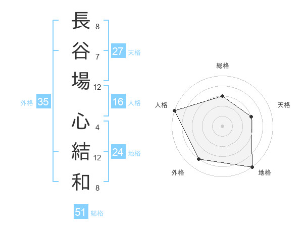 長谷場 心結和さんを姓名の画数から五運を鑑定