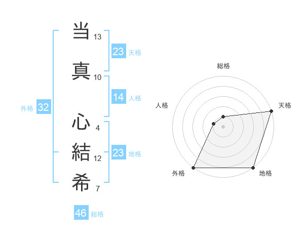 当真 心結希さんの地格は23画の5点!