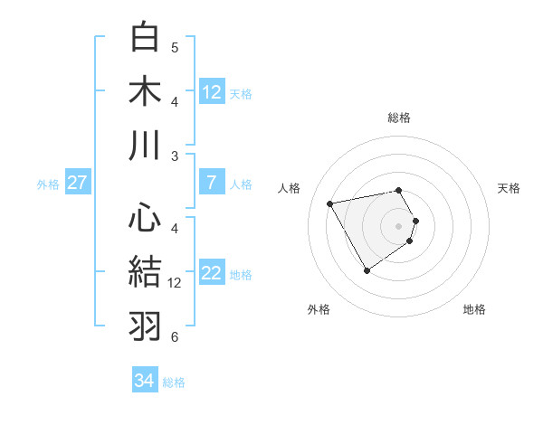 白木川 心結羽さんを姓名の画数から五運を鑑定
