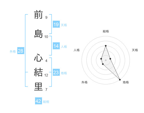 前島 心結里さんの地格は23画の5点!