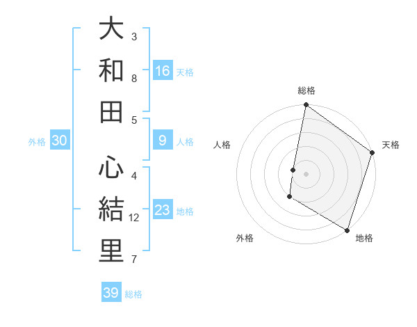 大和田 心結里さんを姓名の画数から五運を鑑定